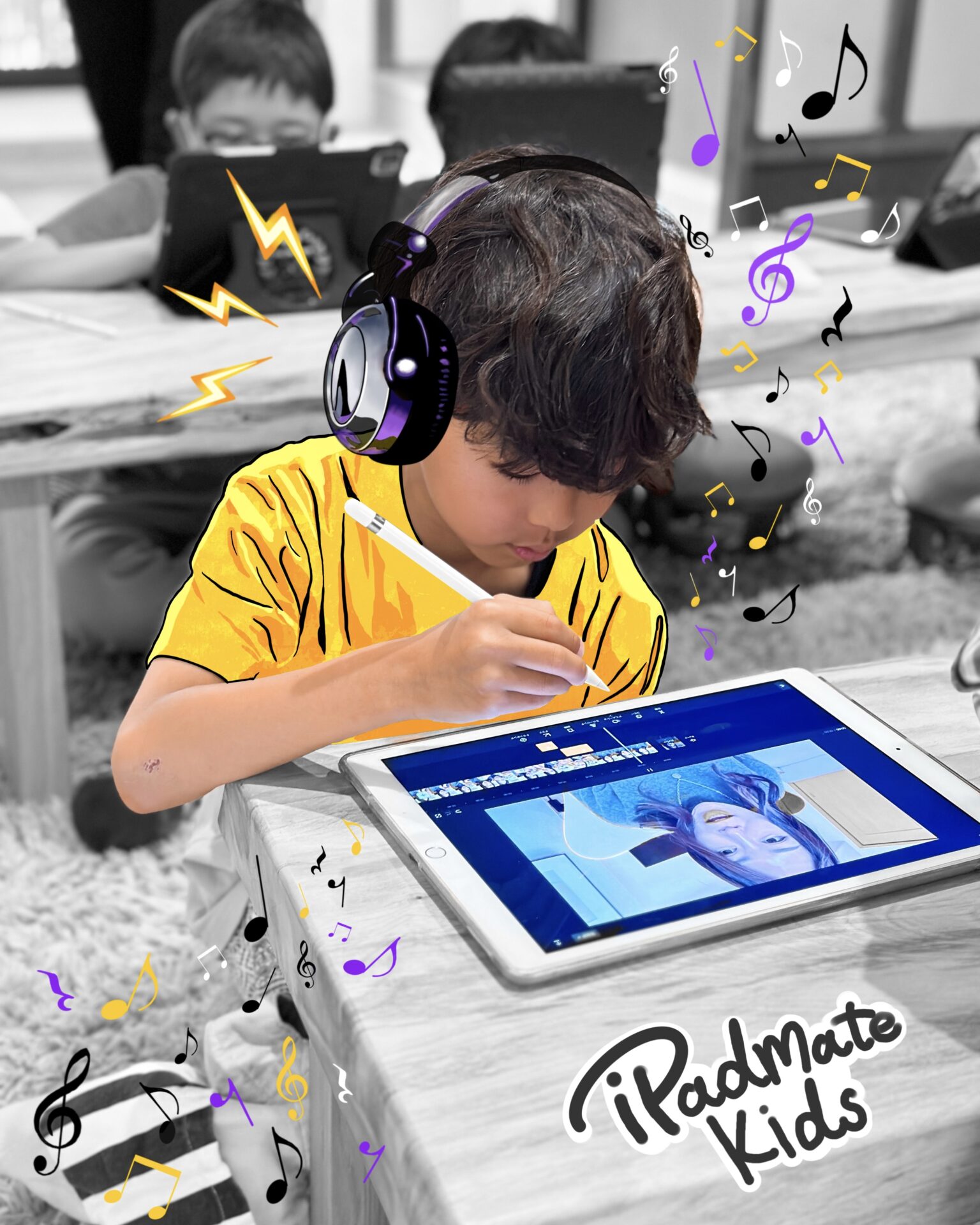 みんなで制作したiPadmate kidsのインスタ用イラスト。子供たちの魅力と個性が際立ち、楽しさとワクワクする未来への希望を感じさせるデジタルアートになりました。